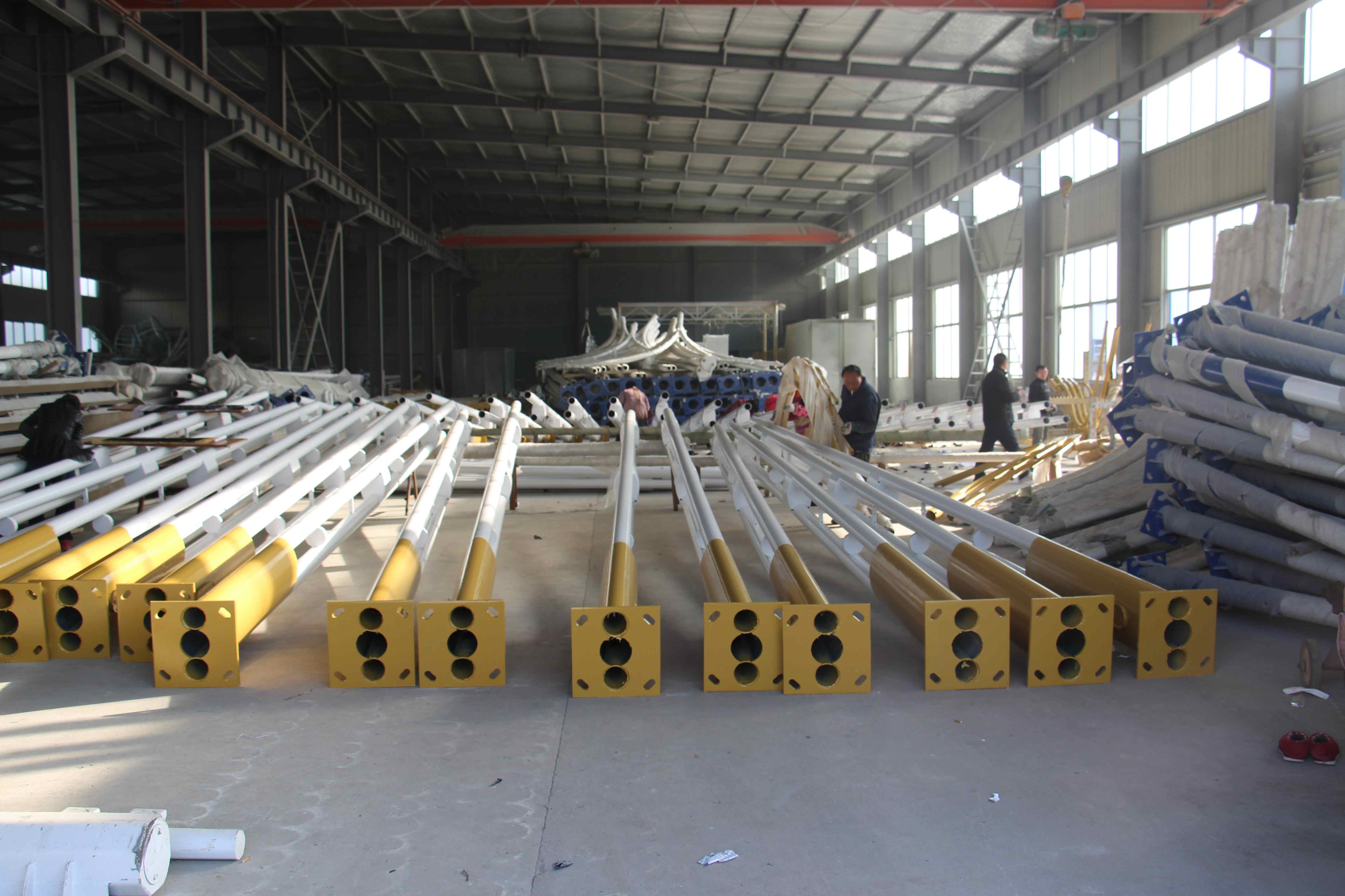 高郵市捷通交通器材有限公司位于揚州北郊送橋開發(fā)區。公司占面積20000平方米,建筑面積12000平方米。 二千年以來,以鋼代木和水泥桿已風行世界,我國各地也紛紛建立錐桿廠,以漂亮的錐桿代替了過去的和水泥桿,裝點了一條條的公路和街道,美化了環(huán)境,照亮了人間成為各地新建和改造道路的不可缺少的配套設施。路燈的千變萬化,已成為各地路燈生產商和建設者的追求。 但現有的路燈,均在燈頭及底座上變化;燈頭款式雖多,但在燈桿上均無變化,只有光身錐桿和光身直桿,十分單一。以我公司多年對管材深加工設備的認識,加上全公司員工的不懈努力,成功設計制造了花式錐桿的機械設備,生產出竹節(jié)、六花